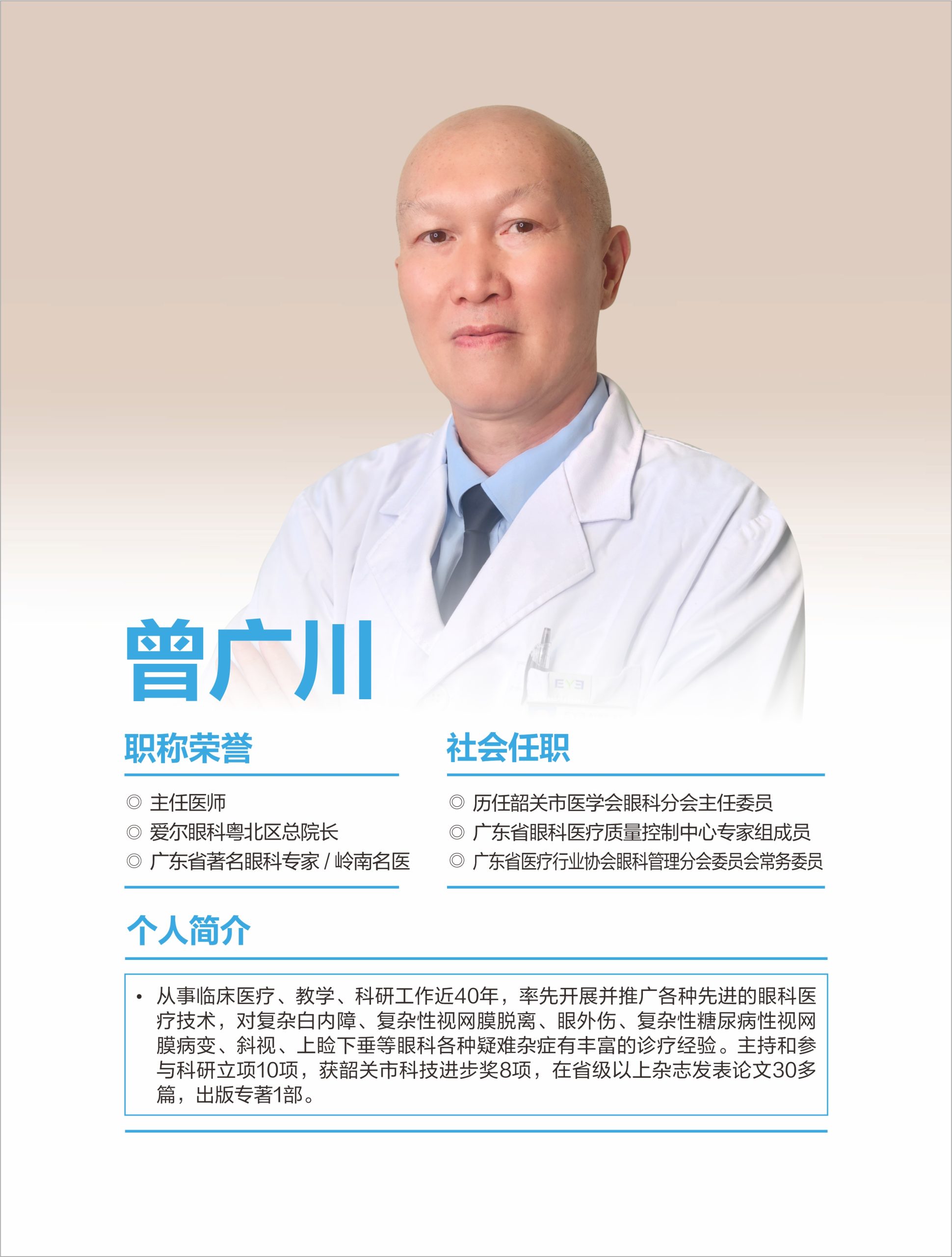 韶關愛爾眼科醫院有限公司白內障團隊擁王愛琴院長(愛爾眼科粵北區)、丘韶瓊院長、郭俊豪主任等多位??漆t生,具備同步國際的白內障手術能力,能熟練開展各項常規及疑難白內障手術。 可開展微切口煥晶白內障手術,植入多焦晶體或多焦+散光矯正晶體,在治療白內障同時同步解決遠視/近視、老花眼、角膜散光等屈光問題,醫生手術經驗豐富,為眾多患者帶來更舒適的視覺。